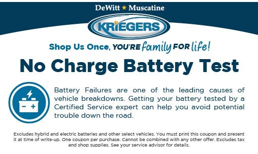 Battery Failures are one of the leading causes of vehicle breakdowns. Getting your battery tested by a Certified Service expert can help you avoid potential trouble down the road.