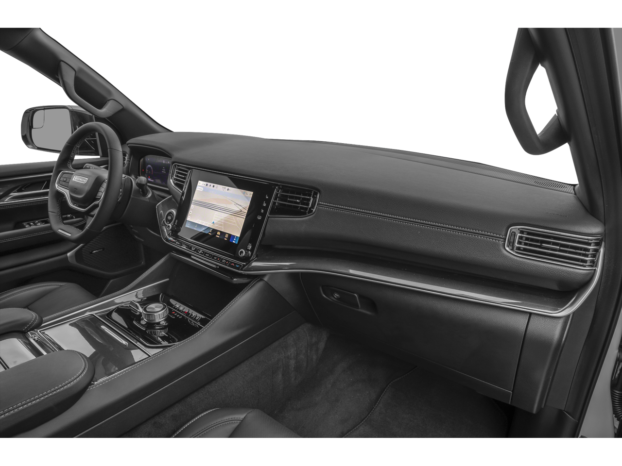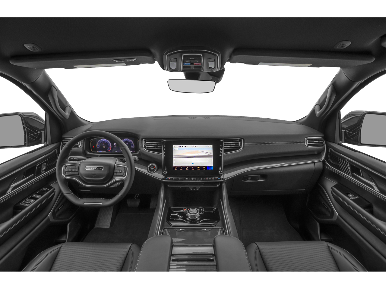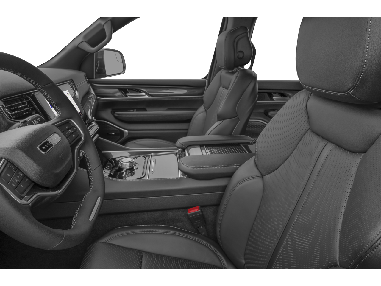 Equipped with Quick Order Package 25J, 10 Speakers, 118 MPH Maximum Speed Calibration, 3.55 Rear Axle Ratio, 3rd row seats: bench, 4-Wheel Disc Brakes, ABS brakes, Adjustable pedals, Air Conditioning, Alloy wheels, AM/FM radio: SiriusXM with 360L, Anti-whiplash front head restraints, Apple CarPlay/Android Auto, Audio memory, Auto-dimming door mirrors, Auto-dimming Rear-View mirror, Auto-leveling suspension, Automatic temperature control, Brake assist, Bumpers: body-color, Compass, Delay-off headlights, Driver door bin, Driver vanity mirror, Driver's Seat Mounted Armrest, Dual front impact airbags, Dual front side impact airbags, Electronic Stability Control, Emergency communication system: Wagoneer Connect, Exterior Parking Camera Rear, Four wheel independent suspension, Front anti-roll bar, Front Bucket Seats, Front Center Armrest w/Storage, Front dual zone A/C, Front fog lights, Front reading lights, Fully automatic headlights, Garage door transmitter, Genuine wood console insert, Genuine wood dashboard insert, Genuine wood door panel insert, Heated door mirrors, Heated front seats, Heated rear seats, Heated steering wheel, Illuminated entry, Knee airbag, Leather Trimmed Bucket Seats, Low tire pressure warning, Memory seat, Navigation System, Normal Duty Suspension, Occupant sensing airbag, Outside temperature display, Overhead airbag, Overhead console, Panic alarm, Passenger door bin, Passenger seat mounted armrest, Passenger vanity mirror, Pedal memory, Power adjustable front head restraints, Power door mirrors, Power driver seat, Power Liftgate, Power passenger seat, Power steering, Power windows, Radio data system, Radio: Uconnect 5 Nav w/10.1 Display, Rain sensing wipers, Rear air conditioning, Rear anti-roll bar, Rear dual zone A/C, Rear reading lights, Rear seat center armrest, Rear window defroster, Rear window wiper, Reclining 3rd row seat, Remote keyless entry, Security system, Speed control, Speed-sensing steering, Speed-Sensitive Wipers, Split folding rear seat, Steering wheel memory, Steering wheel mounted audio controls, Tachometer, Telescoping steering wheel, Tilt steering wheel, Traction control, Trip computer, Turn signal indicator mirrors, Variably intermittent wipers, Ventilated front seats, Voltmeter, and Wheels: 20 x 9.0 Premium 2 Aluminum.